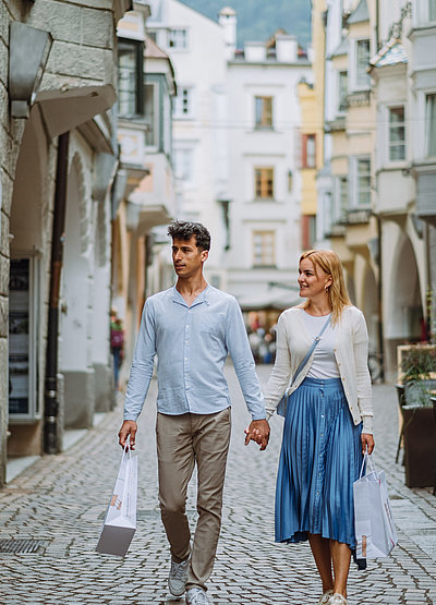 Die historischen Lauben in Brixen sind nicht nur sehenswert, sie beherbergen auch die unzähligen Geschäfte der Stadt. Vom Souvenirladen über die edle Boutique bis hin zur Vinothek ist alles dabei, was Genussshopper suchen.