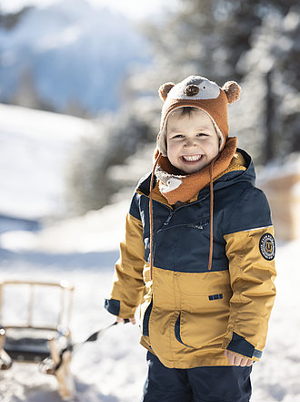 Flocken, die durch die Luft wirbeln, Schritte, die knirschen, Hänge, die glitzern: Wenn die Dolomiten ihr weißes Kleid tragen, laden die Winterwanderwege und Pisten zum Frischluftschnuppern ein. Besonders beliebt ist Südtirols längste Rodelbahn RudiRun, die euch ganz nah am AKI Family Resort PLOSE durch den Wald sausen lässt. In der Nähe steht euch auch das Skigebiet Gitschberg Jochtal offen, das einen Tagesausflug allemal wert ist.