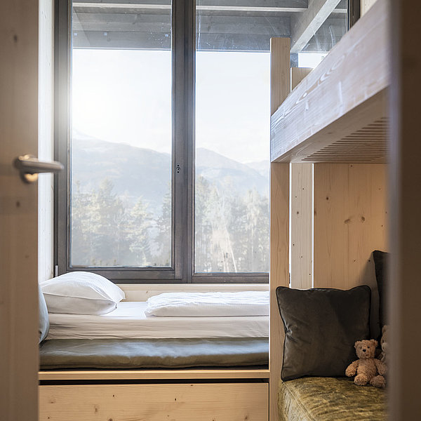 Träume, die nach Fichtenholz duften, Kuschelhöhlen, die zum Abenteuerplatz werden und Kartenspiele, die noch ewig dauern könnten: In unseren Familienzimmern haben wir eure Bedürfnisse und unsere Naturverbundenheit verknüpft und viel Platz für besondere Momente geschaffen. Von der eigenen Terrasse über die komplette Babyausstattung bis hin zur Minibar ist alles da, was euch zuhause sein lässt, und doch so weit weg vom Alltag. Genießt eure Zeit!